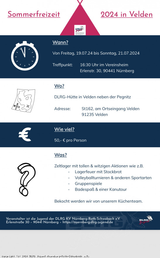 Ein Zeltlager in freier Natur! Wir haben viele tolle und witzige Aktionen geplant, wie Fußball, ein Volleyballturnier, Gruppenspiele und Lagerfeuer mit Stockbrot und Marshmallows. Da wir direkt an der Pegniz sind, haben wir auch die Möglichkeit Kanufahren und baden zu gehen. Anmeldung über folgenden Link: https://nuernberg.dlrg-jugend.de/angebote/termine-mit-anmeldung/sommerfreizeit-2024-in-velden-in-velden-257242-s/#seminarDetail Wir freuen uns auf euch! Euer Jugendvorstand ... Mehr erfahren